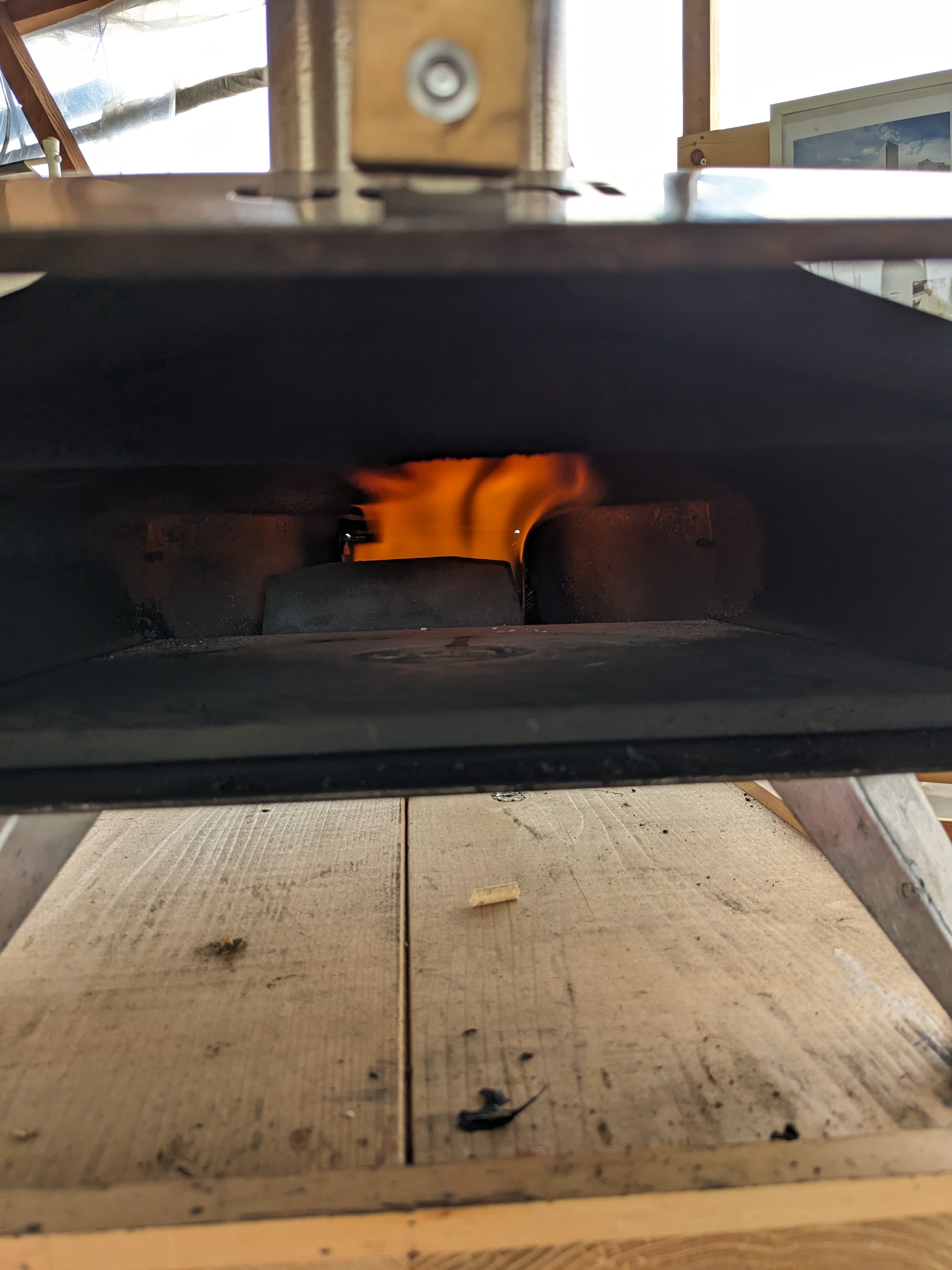 各グループに写真の窯が1つあり、ペレットで火入れをします。